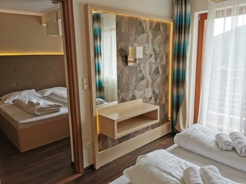 Two-room family rooms, of which there are 3, two of which have balconies with panoramic mountain views. The units can be separated from each other by a door.